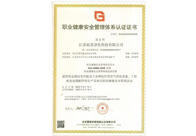 職業健康安全管理體系認證證書