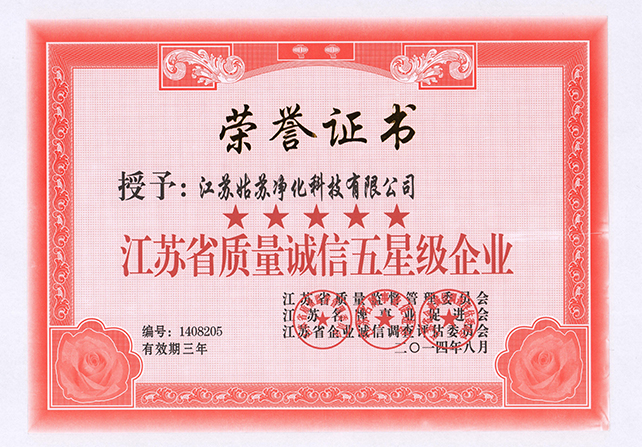 2014年五星級企業榮譽證書