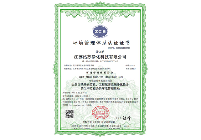 環境管理體系認證證書